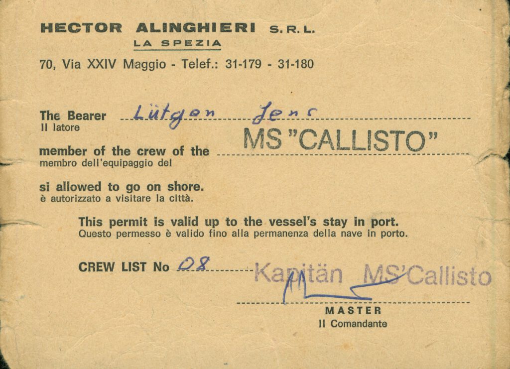 Ladeliste und Shorepässe adminMärz 6, 2026März 14, 2026 <span class="nav-subtitle screen-reader-text">Page</span> Previous PostAquatortaufeNext PostAlle Schiffe mit denen ich Gefahren bin und Reiserouten Related Posts Grossherzogin Elisabeth adminMärz 1, 2026März 14, 2026 MV Callisto (DLHH) adminMärz 2, 2026März 14, 2026 MV Carpricornus adminMärz 3, 2026März 14, 2026